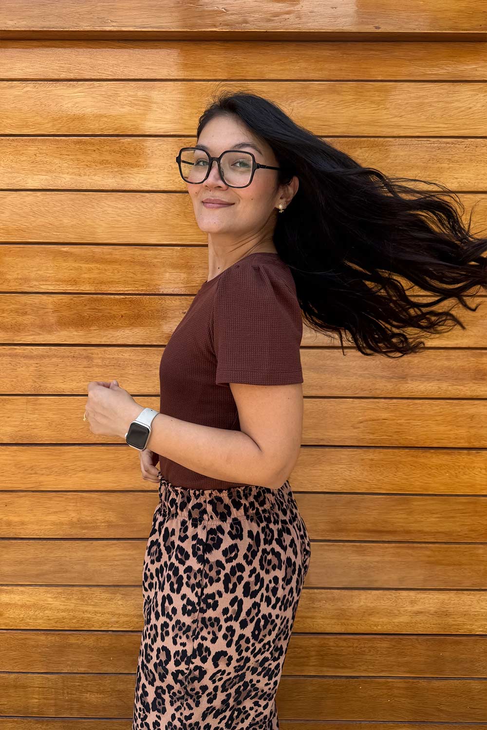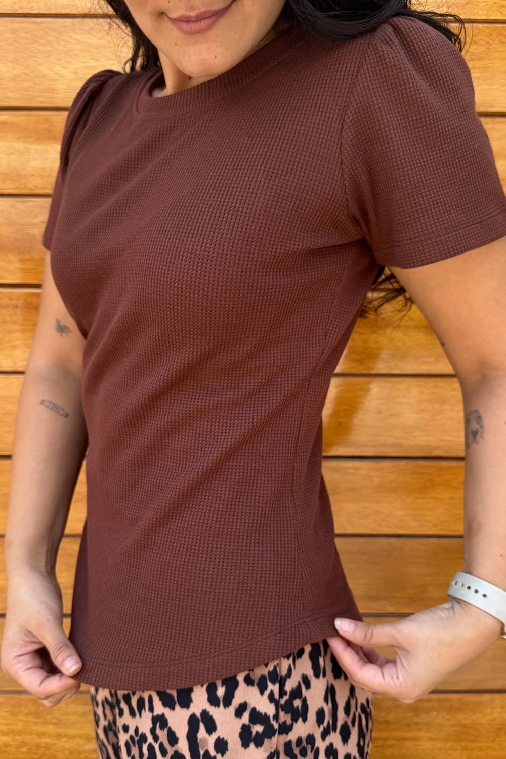 Lore usa una talla S y mide 1.65 m